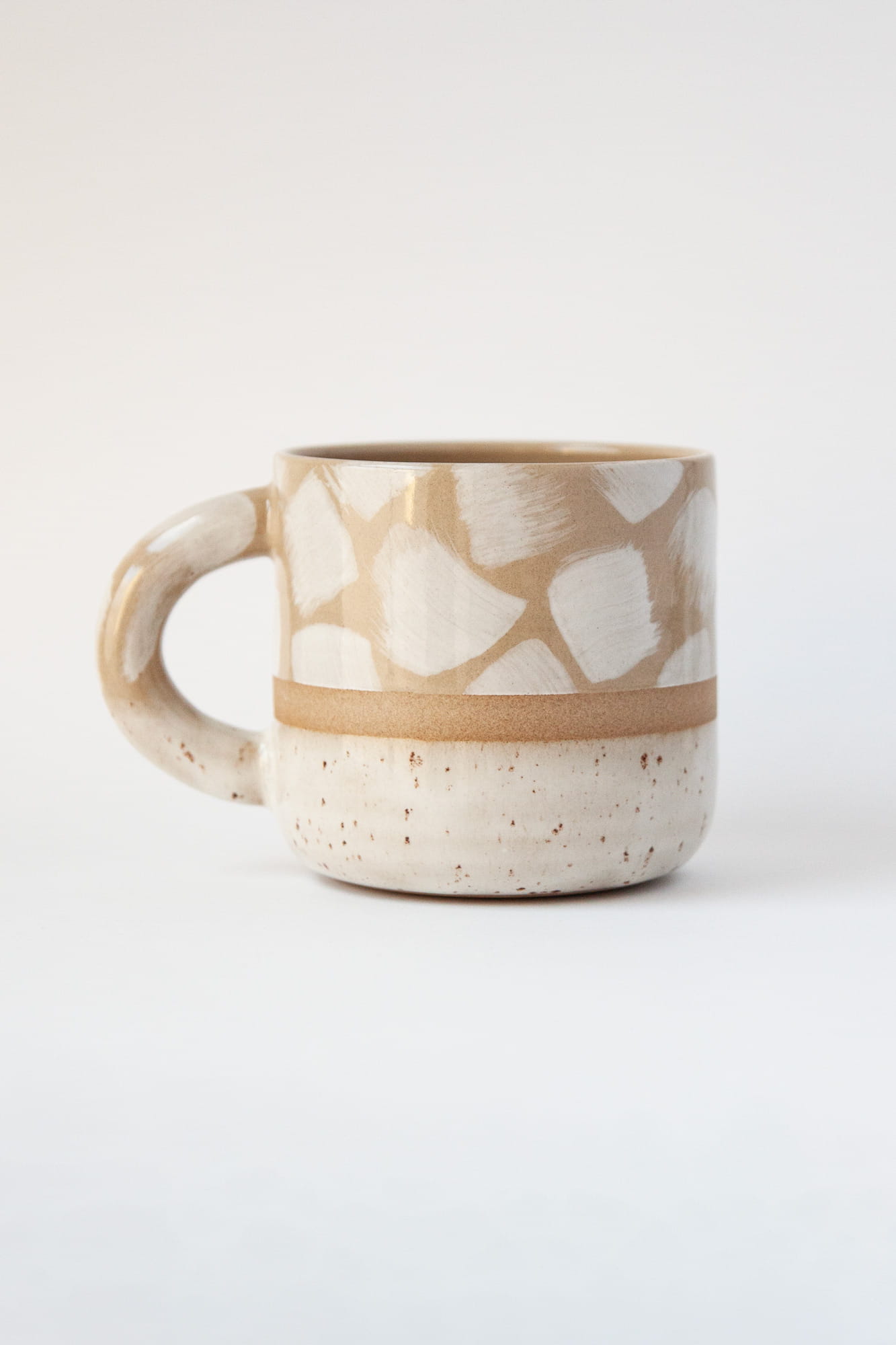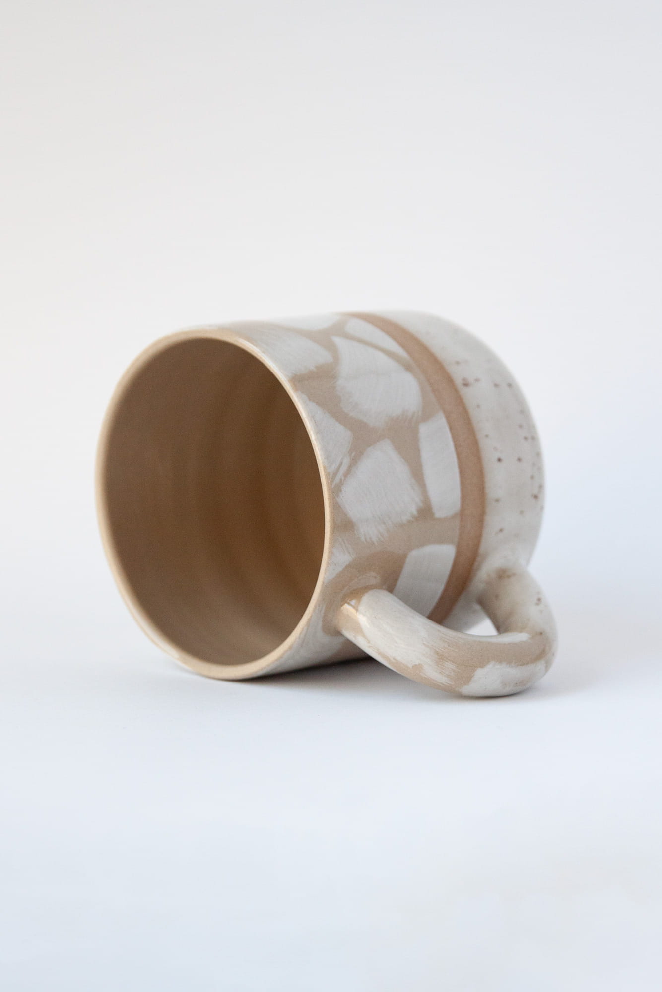 Seria kubków BOLD została stworzona na kole garncarskim z dwóch rodzajów kamionki do wyboru: jasno-kremowej lub ciemniejszej karmelowej. Wzory mają opływowe kształty i grube ucho. Dwie kontrastujące powierzchnie zdobienia oddziela pasek wysokiej jakości gliny.