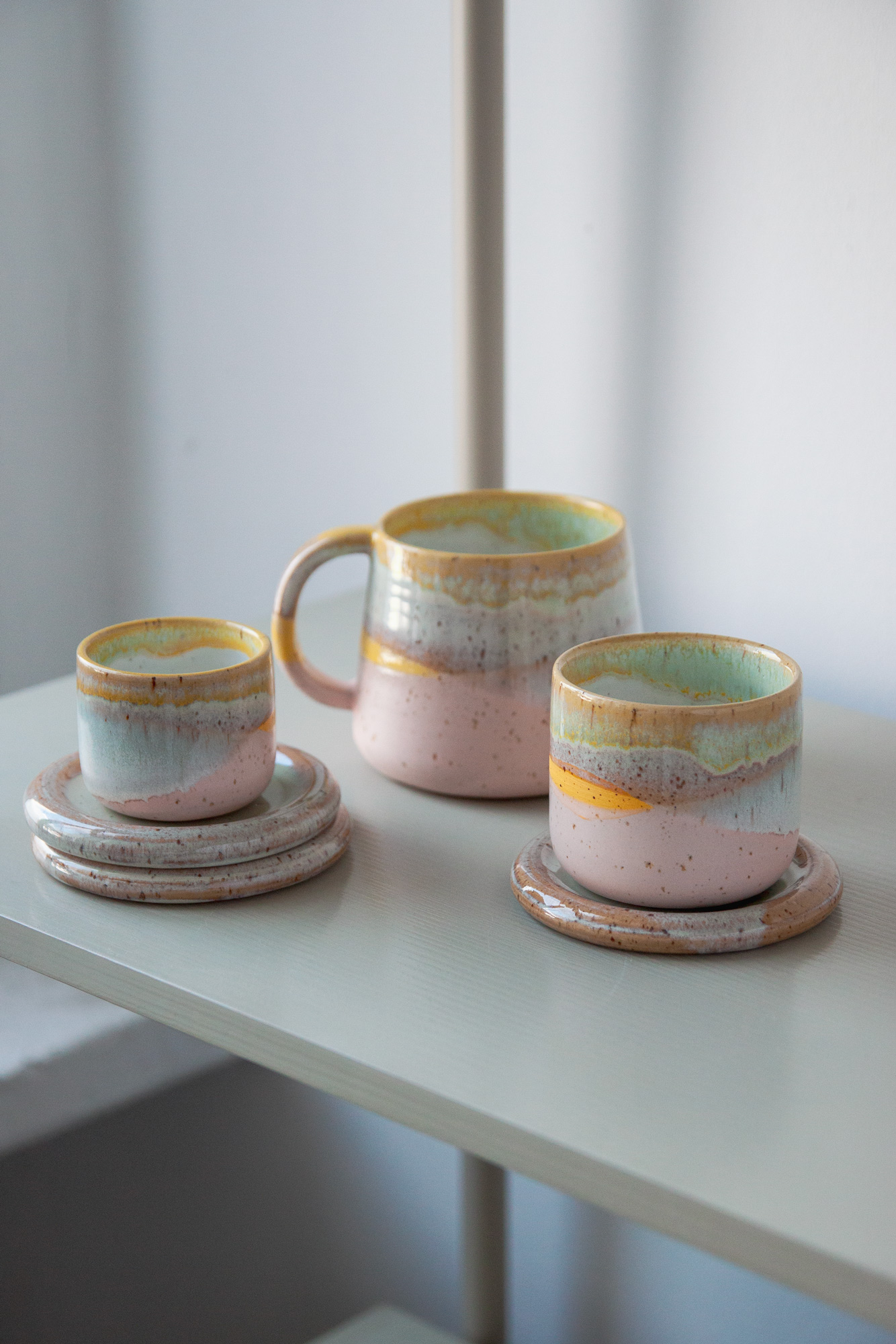 Ceramiczny spodek z kamionki, toczony na kole garncarskim. Pasuje do czarek z serii JEJU - zarówno małych do espresso (100 ml), jak i tych o pojemności 200 ml.